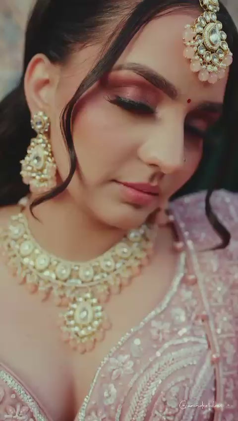 Peach Necklace Set | Peach Bridal Necklace Set | Kundan Necklace Set| Beige Necklace Set | Beige Bridal Necklace Set | Peach Jewelry